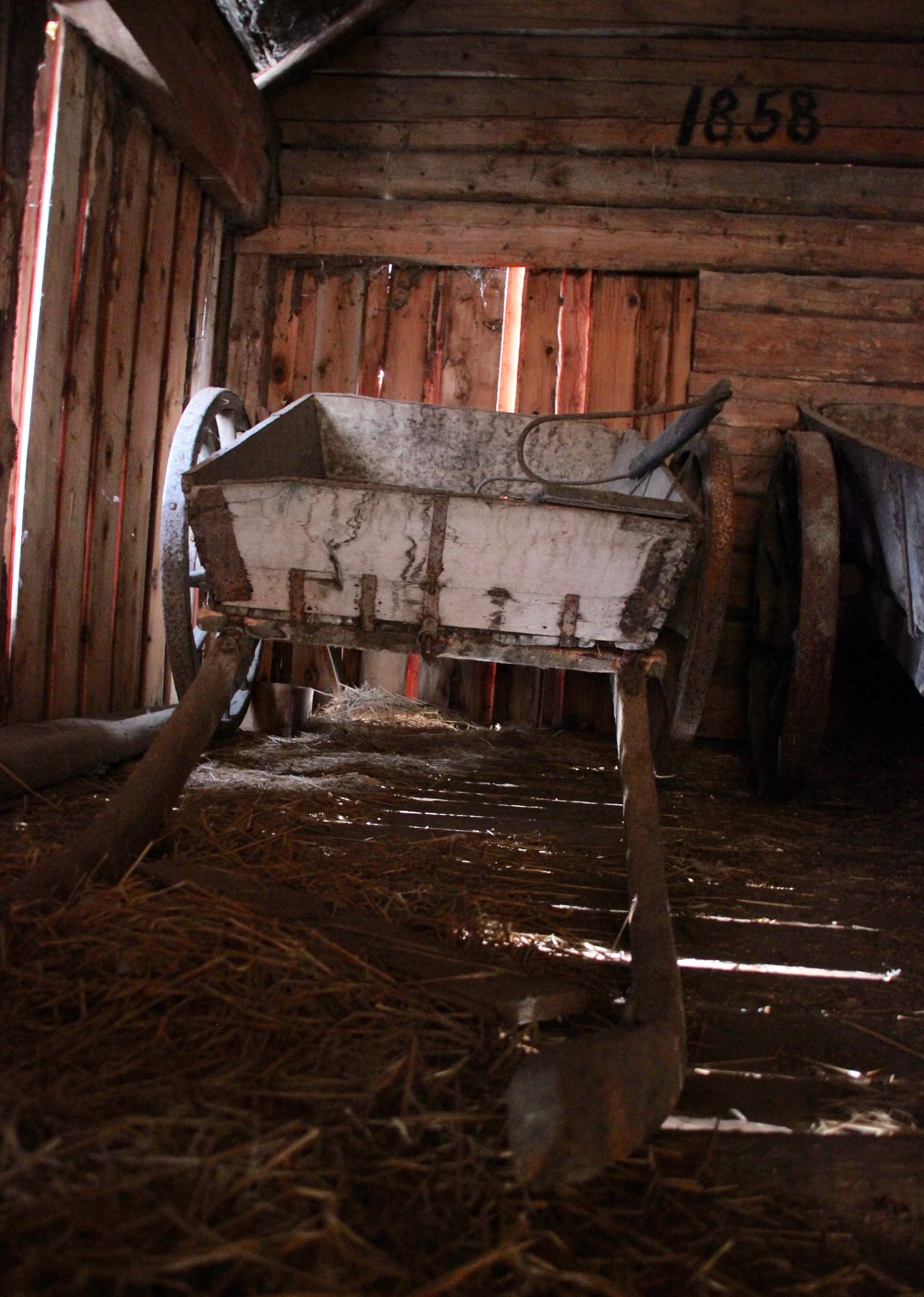 I also got to have a look at the two old wagons and the sled standing in the corner.